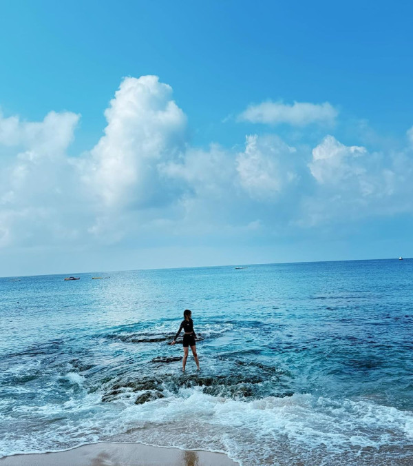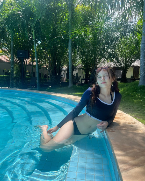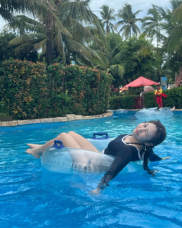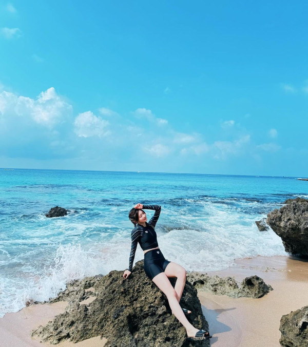 向來甚少在個人社交平台上載性感泳衣照的Ivy,近日終於分享早前與兩位女友人一同前往越南遊玩時的靚相,配文「𝑽𝒂𝒄𝒂𝒕𝒊𝒐𝒏 𝑾𝒊𝒕𝒉 𝑩𝑳𝑼𝑬 𝒂𝒏𝒅 𝑶𝑹𝑨𝑵𝑮𝑬🏝️🏜️🌅(藍色和橙色的假期)」。她先分享了身穿綁帶比堅尼的泳衣照,不過Ivy並沒有單穿比堅尼,上衣就多加了一件長袖泳衣,但都明顯可見她凹凸有致的身材,以及超吸睛的S型曲線!