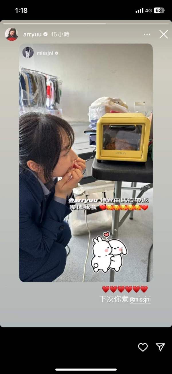 前往馬來西亞旅遊的Moon都不忘買手信回港派給好友,當中陳瀅就在限時動態大晒Moon所派的伴手禮,並表示「@arryuu(Moon)特登由馬拉帶返嚟俾我食❤️❤️❤️」,隨後Moon就回復寫道「下次你煮」,可見二人姊妹關係超好啊!