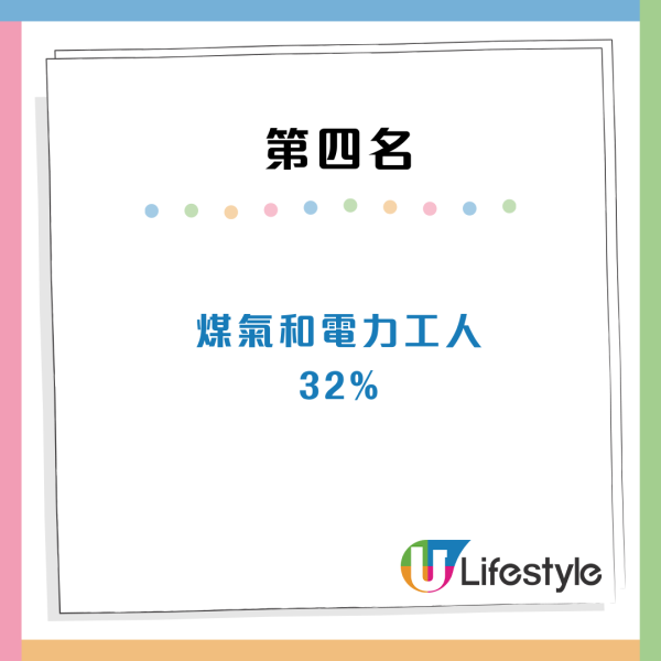 至於最少出軌同事的工種則為教師,其餘9個工種,其中保括醫護人員和慈善家亦相對上較少出軌。
