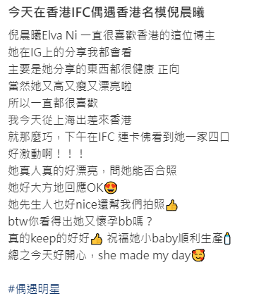 倪晨㬢(Elva)自3月宣佈懷第3胎的消息後,之後正式揭露第三胎的性别,宣布是一名男B。早前於6月26日宣佈母子平安誕下BB(Nigel),恭喜恭喜!
