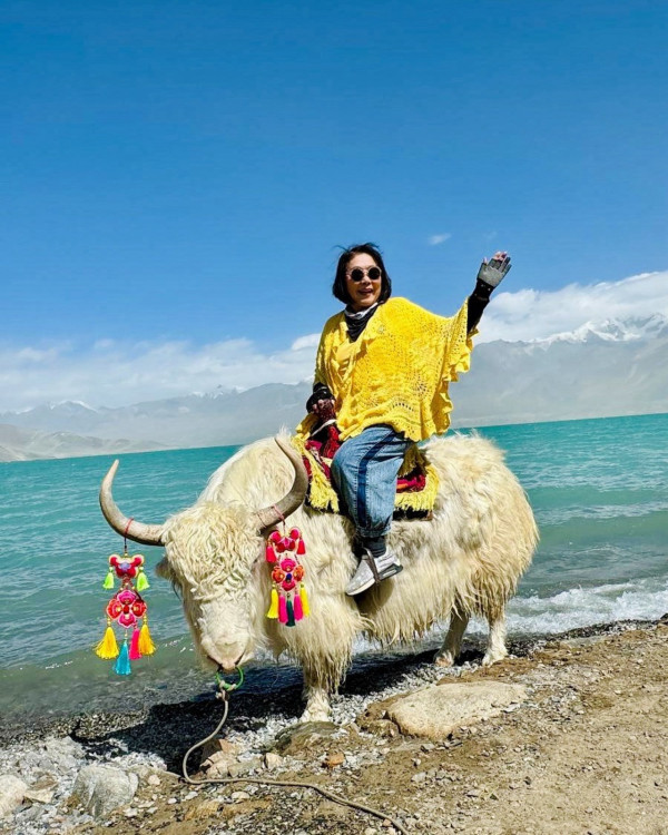司棋姐早前在社交平台分享多張在新疆旅遊的美照,心情很好的她除了把握機會到白沙湖、帕米爾高原雪山、木吉火山口、莎車縣沙漠等著名地標外,更換上少數民族服裝加上當地著名二琴弦樂器都塔爾四周打卡,並指這個造型令她回想起自己50年前曾出演週的經典劇集,所以搞笑留言「啼笑因緣之喀什沈鳳喜」。