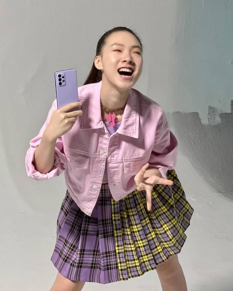 15歲的Elly轉眼間已經亭亭玉立,身材如模特兒般高挑且充滿少女氣息。Elly梳起高馬尾,感覺十分精神有活力,配搭一身粉色系的服裝,粉紅色的牛仔外套和校園風短裙,營造出少女的活力!展現了好身段和高挑修長的比例,實在是遺傳到媽媽的好基因。再加上甜美笑容表情,很討網友喜歡,大讚Elly真的是從小美到大!