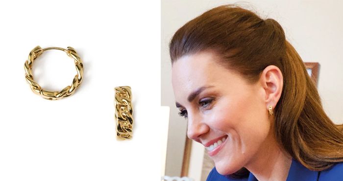 凱特王妃喜歡這個品牌的圓形金屬設計元素。圓形可以增加親和感,而上面凹凸不平的紋路提升首飾的質感。
