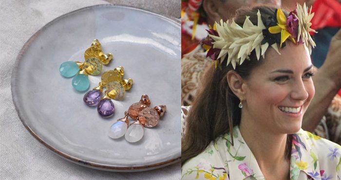 這對淺藍色水滴形耳墜十分優雅,適合凱特王妃外訪時的穿著。