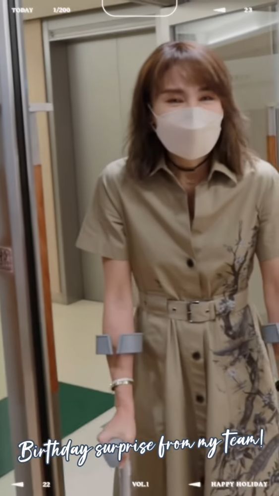 踏入51歲生日的黎姿近日忙於連串慶祝活動,日前她就在社交網分享了一眾員工為她慶祝的影片,片中驚見她撐着拐杖,惹不少網民擔憂。原來黎姿是在做運動時傷到膝蓋,被醫生叮囑要多休息,不過受傷後的她仍樂觀面對,笑稱:「雖然一段時間沒做運動,很慶幸體力還支持得來,應該是平日訓練有素呢!順利完成所有日程後,繼續回家乖乖休養!」。