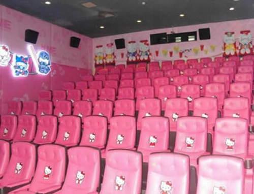 Hello Kitty 電影廳裡的座椅全是粉紅色,而且都是真皮啊!