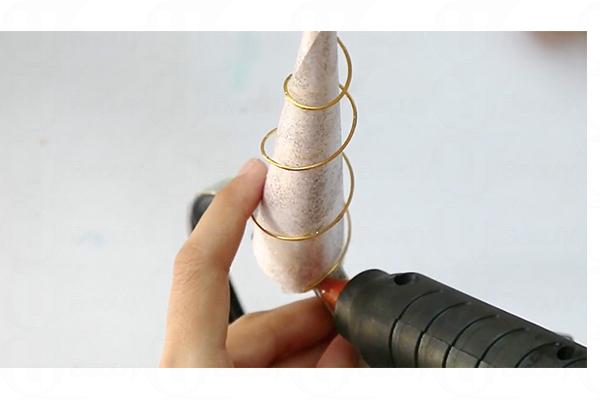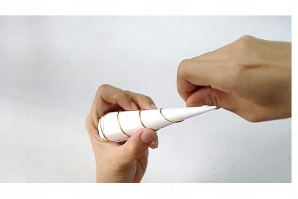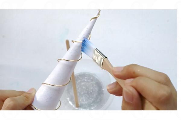 9. 膠水與閃粉混合,以刷具搽上圓錐筒