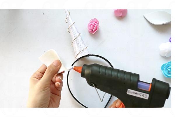 11. 用熱熔膠槍逐一黏上裝飾品,完成!