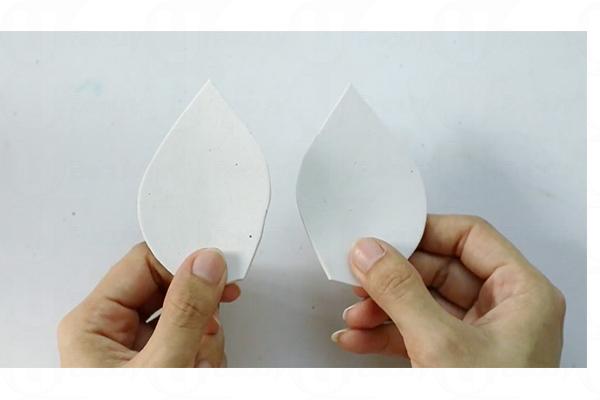 1. 重疊兩塊發泡膠板,以尖銳的物品畫出耳朵形狀