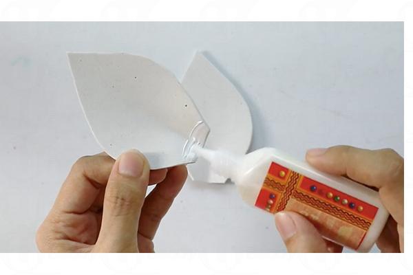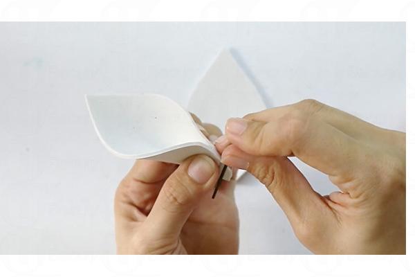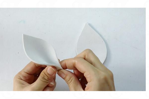 3. 耳朵底部輕輕對摺,搽上白膠漿