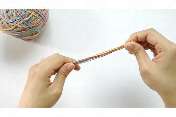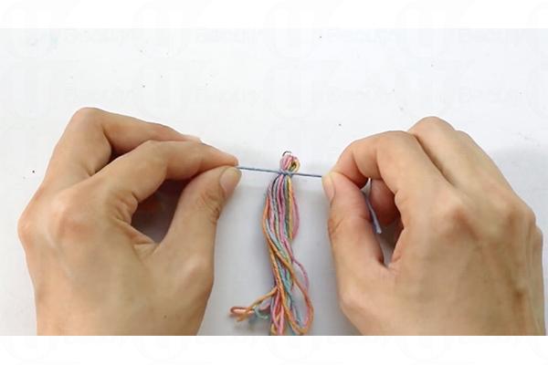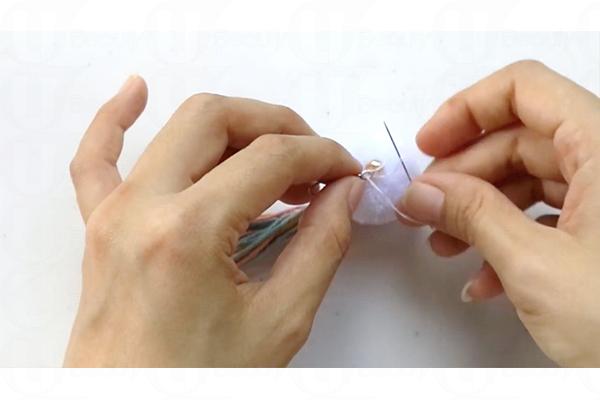 6. 針線穿過七彩繩的圓扣