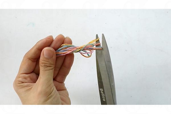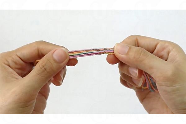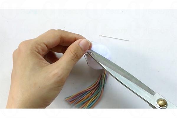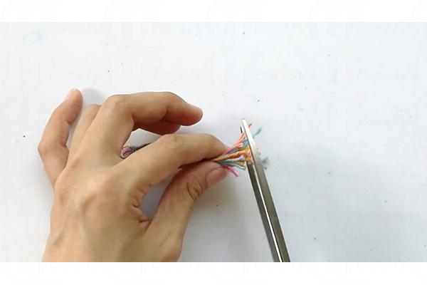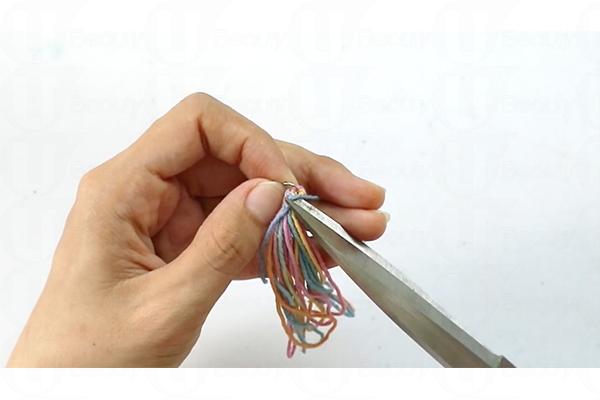 5. 剪掉七彩繩對摺的部分,繩尾修整齊