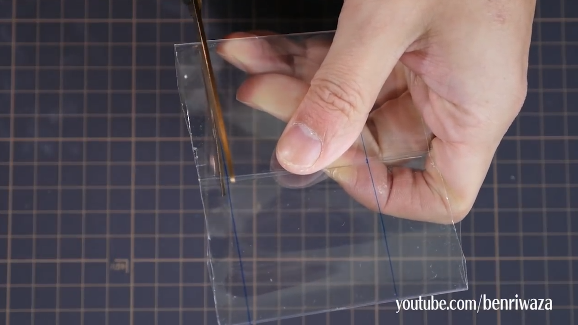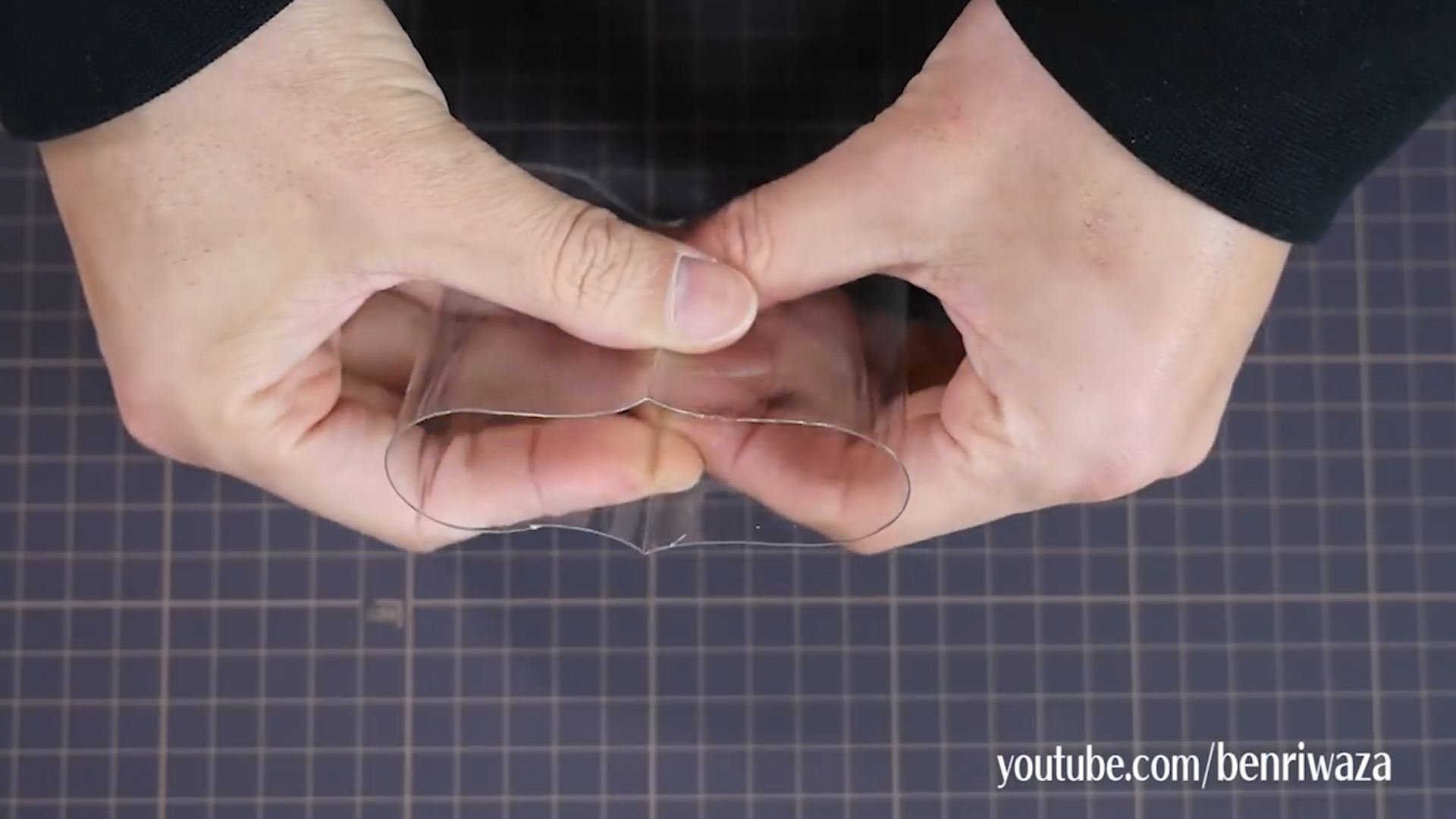 將膠圈壓平,可用剪刀輔助,令摺線更明顯。將摺線置中,壓平兩側。