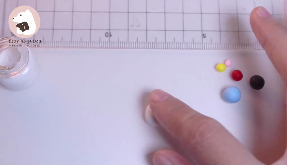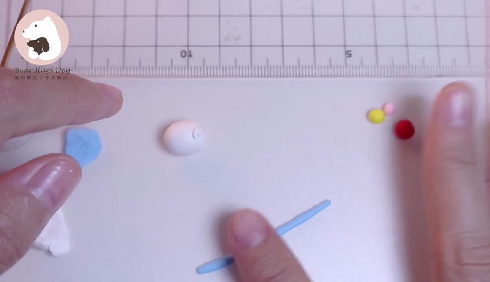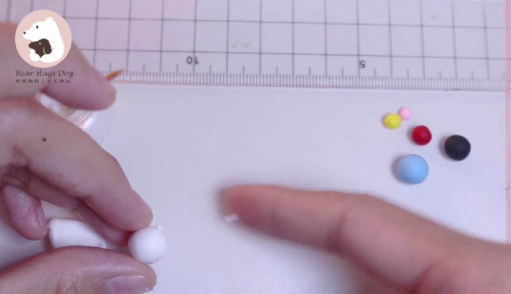 把白色黏土搓圓,製作身體。然後取少量黏土,搓圓,製作雙手!