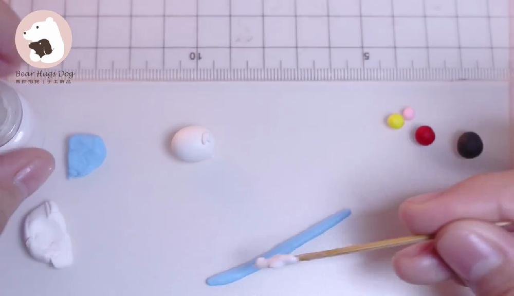 把白色黏土搓圓,貼上腳和尾巴!
