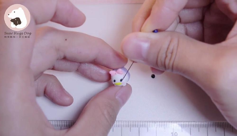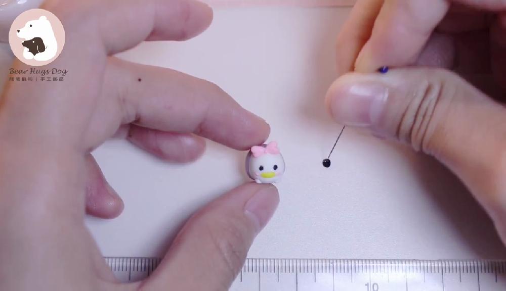 黛絲的製作方法與唐老鴨相若。最後用大頭針沾取一點黑色顏料,在眼睛上方畫上睫毛。