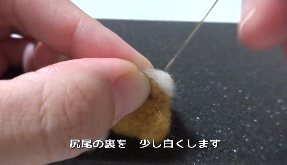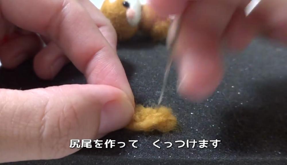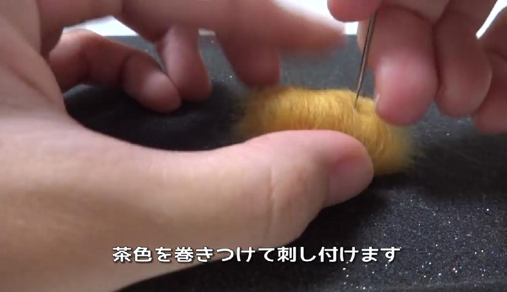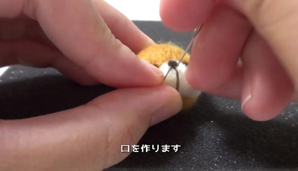 把啡色羊毛搓成細線,戳刺在嘴巴位置。