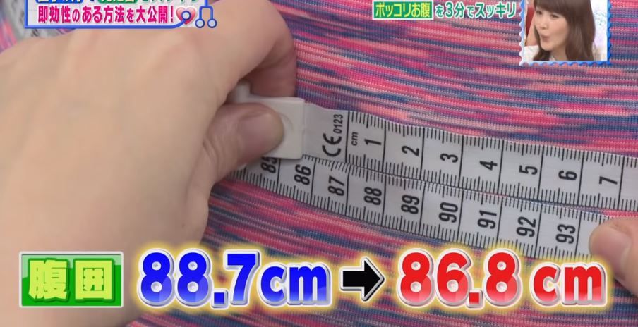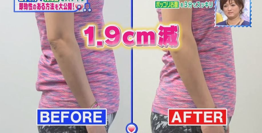節目組找來有反腰問題的女士來測試這兩組運動的成效,結果花了3分鐘,原本88.7cm的腰圍縮回86.8cm,效果顯著。