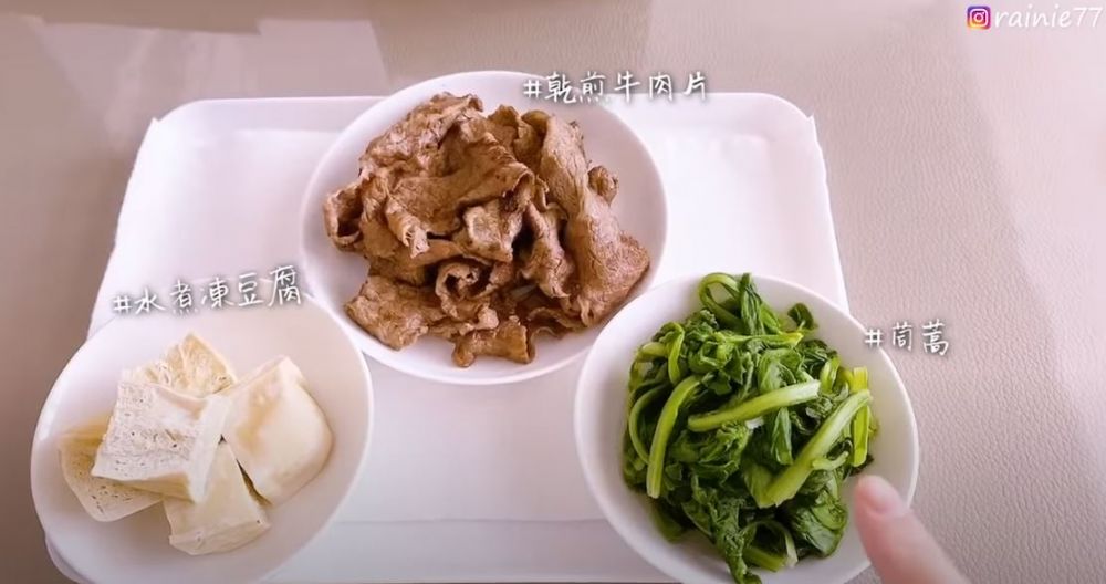 她一天只有吃兩餐,第一餐便是水煮菜加煎雞肉或牛扒,但不會添加油來煎。第二餐是高蛋白粉配無糖豆漿,她表示一定要搭配少量碳水化合物,所以會加入番薯代替澱粉。
