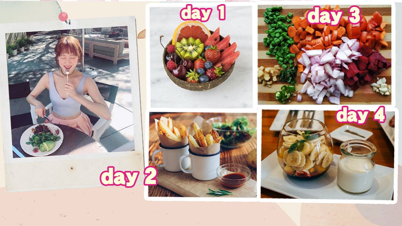 第三天可以吃除香蕉以外的任何水果以及除了薯仔以外的任何蔬菜~同樣需要配合8 至12杯清水,幫助把身體的毒素排出體外!