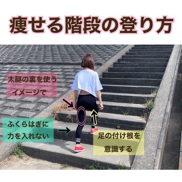 行樓梯時注意運用鼠蹊部、大腿內側肌肉,小腿不用力。