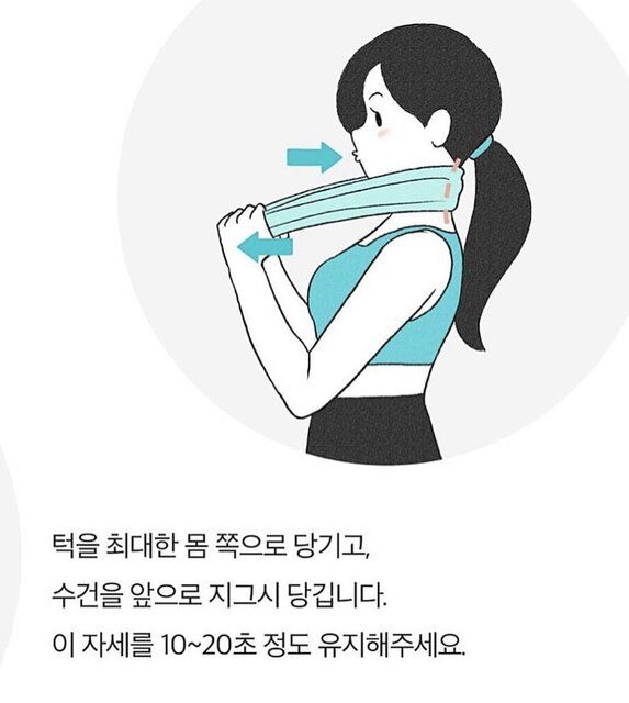 觀察完自身的寒背狀況和「烏龜頸」程度後,便需要正視並着手開始改善。 首先,我們需要準備一條長度適宜的毛巾,然後把毛巾放在頸部後方,挺直腰骨,把眼睛的視線集中在正前方,然後雙手用力把毛巾拉向前,頸部則反方向地後靠,保持該姿勢10至20秒即可。同時,緊記頸椎拉伸期間,保持正常呼吸~
