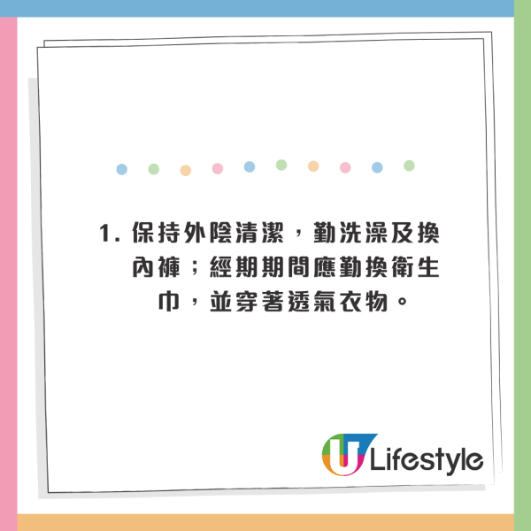醫生續指此病對生育齡期(即15至49歲)女性身上較常見,因長時間使用衛生巾不換而致病的情況亦非罕見;保持良好生活方式可大大減低發病機會,包括: