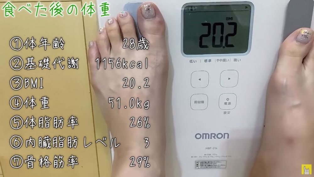 吃完之後木下立刻再度量度體重,發現她的體重上升至51公斤,體脂更到了26%!也就是說一餐就讓木下的體脂增加了4.4%,是一個十分驚人的數字!