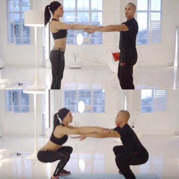和男友手拉著手一起緩緩向後坐,用臀部的力量慢慢站起來。除了能訓練臀部,女生的手臂跟上半身也能一起鍛鍊。(這個動作超級考驗情侶的默契呢!)