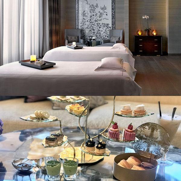 做完水療按摩後,和姊妹們享受下午茶,吃點精緻點心,聊聊近況和小秘密。由2017 年12 月15 日開始,「麗思酒廊」將與新加坡皮革手袋品牌 KWANPEN聯乘,推出雙人下午茶。以KWANPEN經典的Raffles系列為主題,糕點融合了摺疊風格及亮麗顏色。