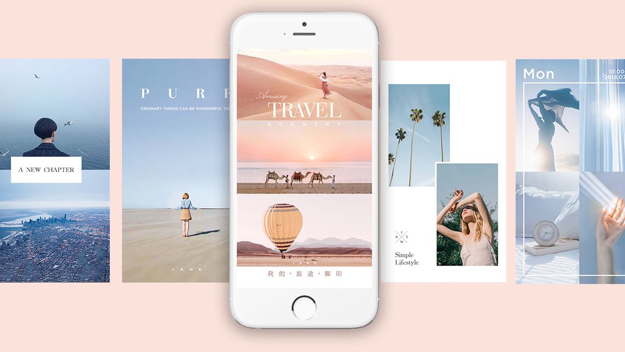 共有多達11種排版類別,大部分也供免費使用。其中「視頻」、「簡約」、「無縫」就最適合用來製作IG Story (其餘的可以做雜誌排版、鎖屏、卡片設計等),來看看以下示範。