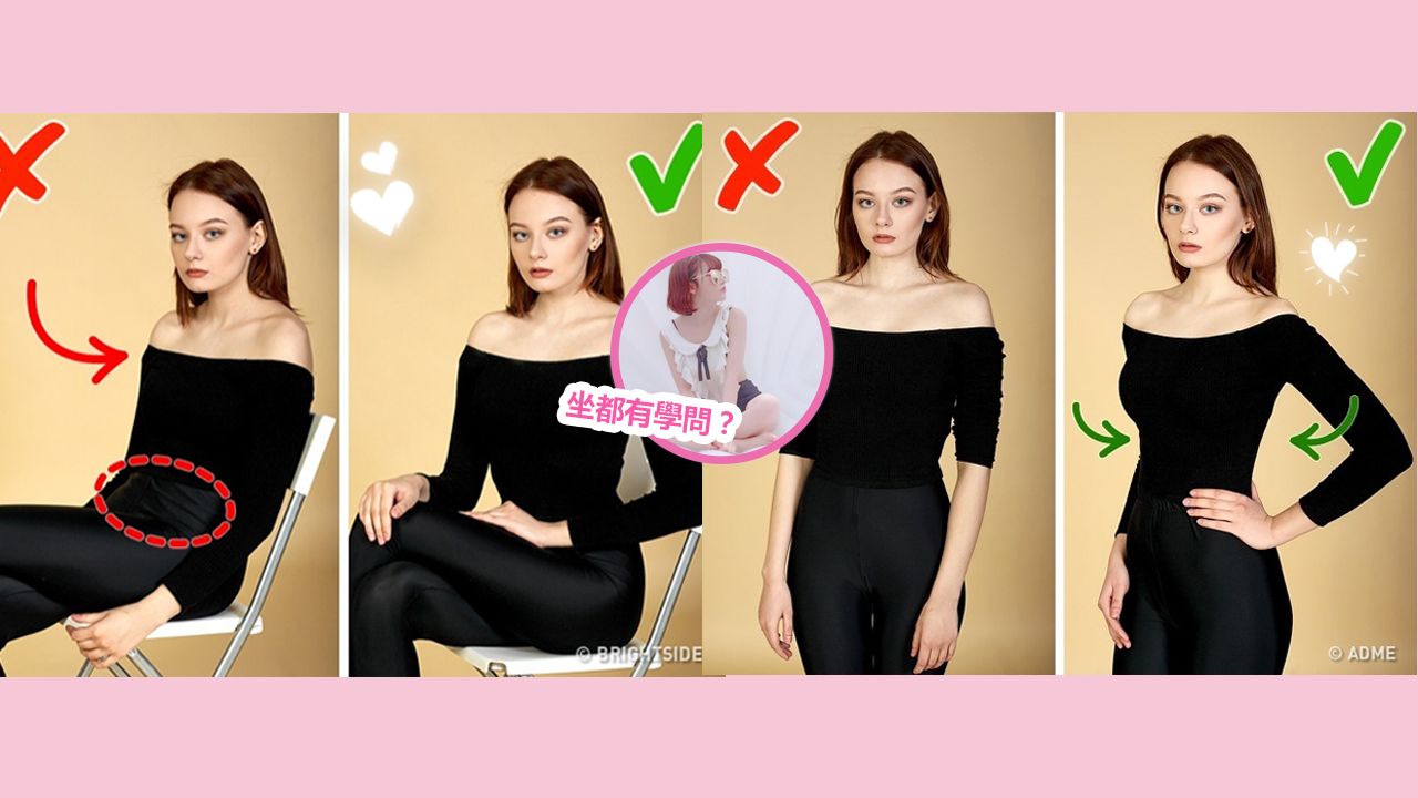 坐著椅子時,挺胸坐直,不要靠著椅背,屁股盡量向前坐,就能輕鬆遮著小肚腩!若是隨意的坐在地上拍照,可以考慮盤腿坐的姿勢,遮蓋腿粗的位置,自然能夠讓腿看起來更細更幼!