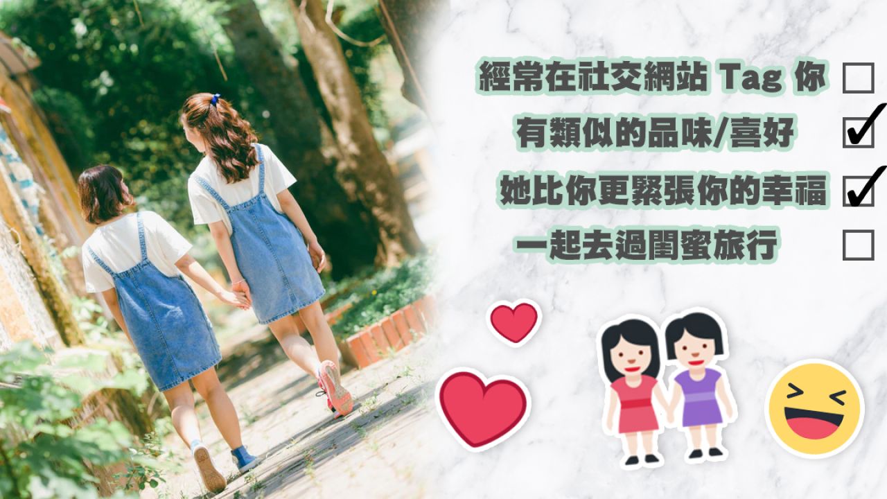真心希望你能過得幸福,若你沒有男友,她比你更緊張。跟男友吵架時,也會陪你講對方壞話。