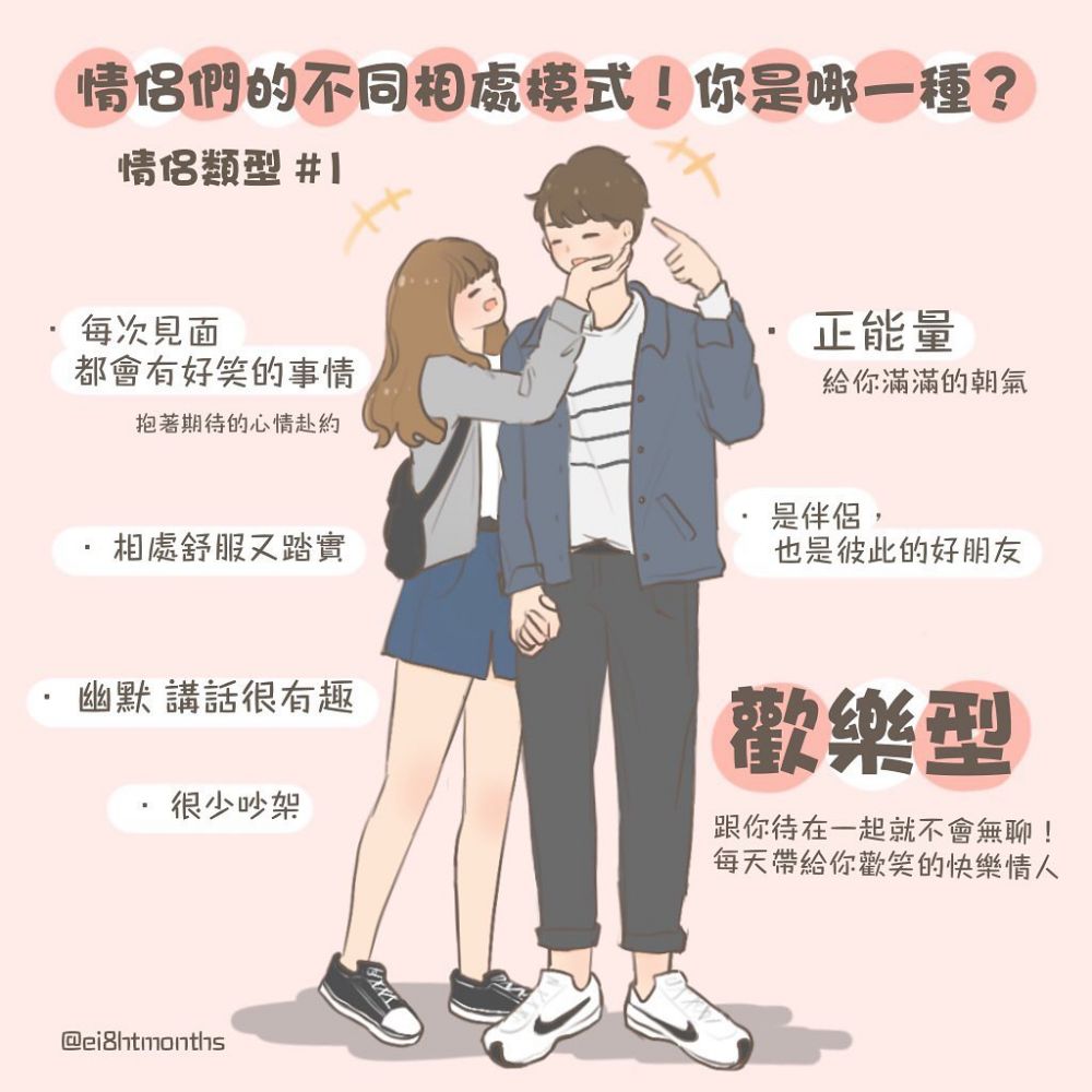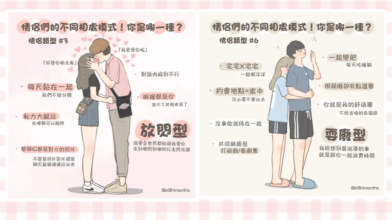 每次在街上看到一對對的愛侶,都會忍不住想看看他們的相處模式,最後發現實在是每一種都有自己獨特的風格和情趣!一位香港的插畫家「捌月插畫」繪畫出6種情侶相處模式的不同,不少人都直呼十分中肯!不知道你和另一半是屬於哪一型呢?一起來看看吧!