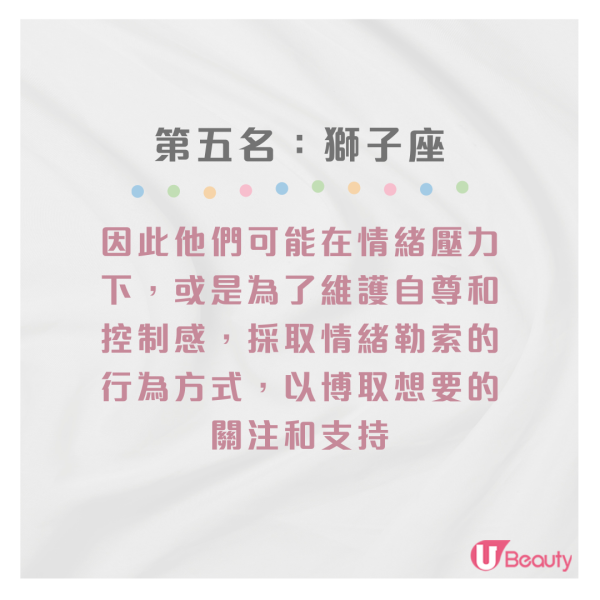 最愛「情緒勒索」星座|情緒勒索在親密關係中常見又難以察覺,勒索者通常會利用操控對方感受的方式,達成自己的目的。在12星座中,哪些星座最愛「情緒勒索」呢?台灣塔羅師小孟就點名了這5個星座,其中雙子座利用口才施壓;獅子座靠情勒博取關注,快來看看你是不是也上榜了?👇(文章由《就醬Young》授權轉載)