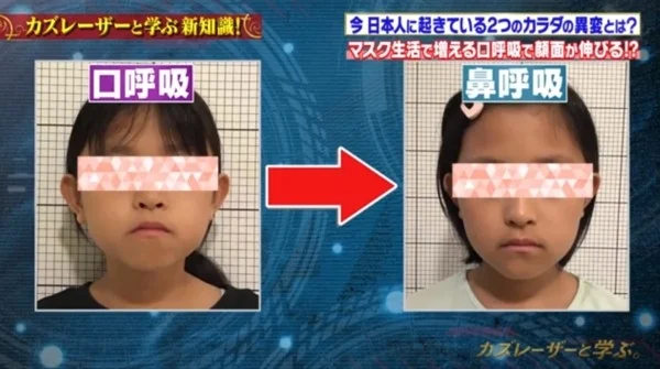 山口醫生在節目中分享一個病例,他曾經為一名女童進行牙齒矯正,女童因戴口罩,多年來改用嘴巴呼吸。在矯正的短短7個月,女童轉為用鼻子呼吸,面相出現明顯的變化,其整體臉型縮短,人中位置也明顯縮短、面型變細,看起來也年輕及精神不少。