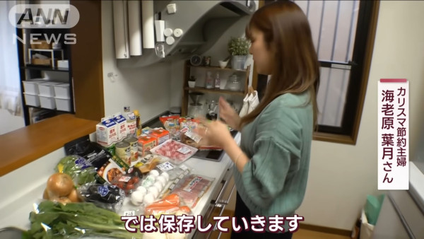 最後,海老原葉月習慣把購入的食材分類整理,她在採購食材之後,會按照不同類別把食材分類收納。其中一個分類項目是「First」,裡面存放了全是快將到期的食品,她在煮飯時會優先煮這個分類內的食品,避免浪費食材,保證買過來的一分一毫都沒有浪費。