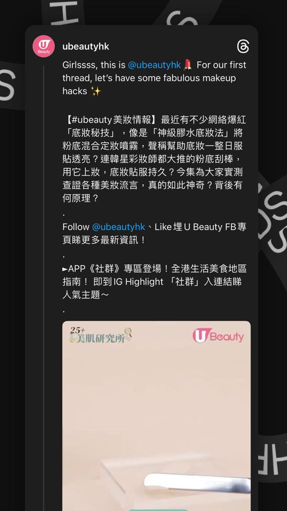 UBeauty都登陸Threads了!立即追蹤吧!https://www.threads.net/@ubeautyhk