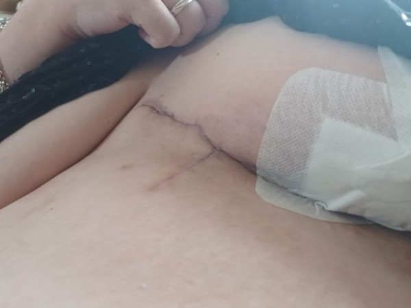 醫生利用藥物引導令女子進入長達8日的昏迷狀態,期間為她進行兩次手術,清走感染「食肉菌」的壞死組織,包括部分右邊乳房。手術需把女子從死亡關口救回來,但令女子在身上留下足足15吋的疤痕,由腋下一路延伸到肋骨。