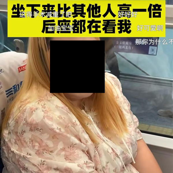廣州一名身高170公分、體重286公斤的女生,因乘搭高鐵時硬擠入二等座位,引發了網民的爭議。而這位女生亦為自己的選擇辯護,並呼籲這個社會更加包容。