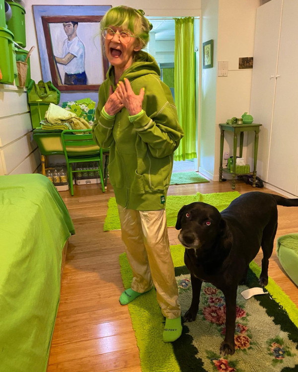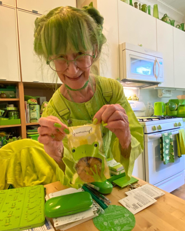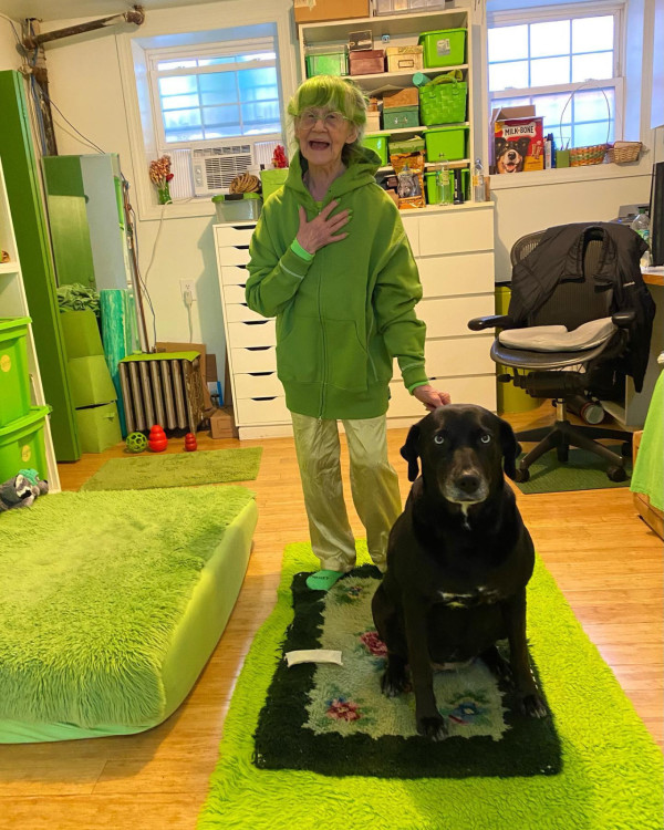這名為Elizabeth Sweetheart的婆婆的「綠色生活」始於20多年前,自那時起,她決定只穿綠色的衣物,並將生活中的每個細節都融入綠色。從頭到腳,從衣櫃到家居,綠色無所不在,當中甚至包括頭髮顏色、眼鏡、髮夾、指甲油等細節,綠色可謂無所不在。