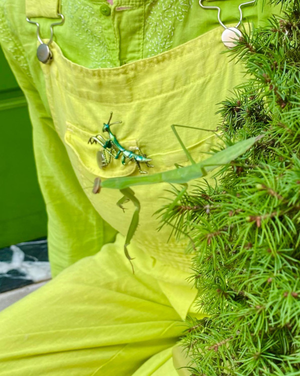 在Collina Strada的2025春夏秀「Touch Grass」中,「綠色」這種色彩成了焦點。而83歲的Elizabeth Sweetheart,又被稱為布魯克林的綠色女士,便是其中一位走秀模特兒。Elizabeth Sweetheart平時已經常穿著綠色,亦是一位小有名氣的KOL。雖然她已有83歲,身高不到五英尺,還有一頭亮綠色的頭髮,但在Collina Strada的時裝秀上卻毫不突兀,因為這個品牌向來以「挑戰美的界限」而聞名。