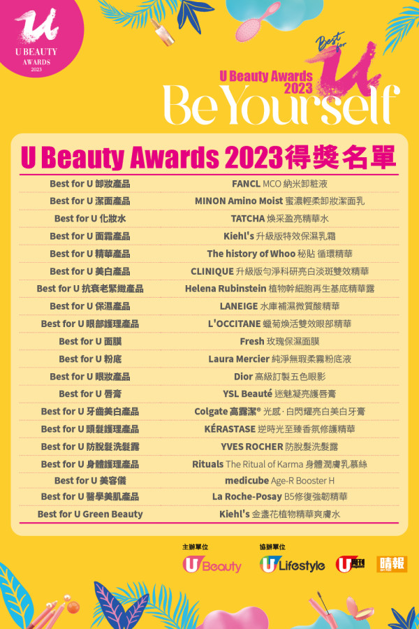 「U Beauty Awards 2023」各個獎項:https://beauty.ulifestyle.com.hk/awards2023/result