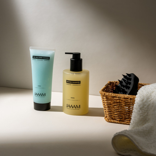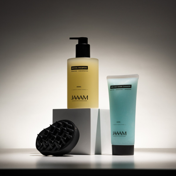 對男士來說,「Gel頭」猶如女士的妝容。這個套裝包括日常使用的甦靈洗髮露,100%深度淸潔髮泥,多種維生素亦有助頭皮頭髮健康。除此之外,每周使用1-2次的海鹽深層洗髮露,當中豐含海鹽粒,能抑制真菌,去除頭皮角質,並搭配水解膠原幫助修復髮絲。再搭配使用頭皮按摩洗髮刷,避免徒手力度不當抓傷頭皮!