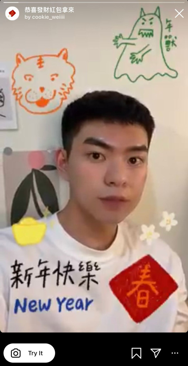 龍年IG濾鏡推薦5:恭喜發財紅包拿來(創作者:Cookie_weiiii)