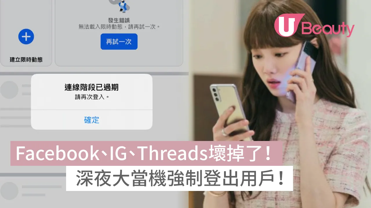 Facebook、Instagram、Threads壞掉當機故障|今天晚上,Meta旗下的社交媒體平台,包括Facebook (又稱FB、臉書)、Instagram (IG)和Threads等,突然出現了故障,造成許多用戶無預警被自動登出,引起了網民哀號!