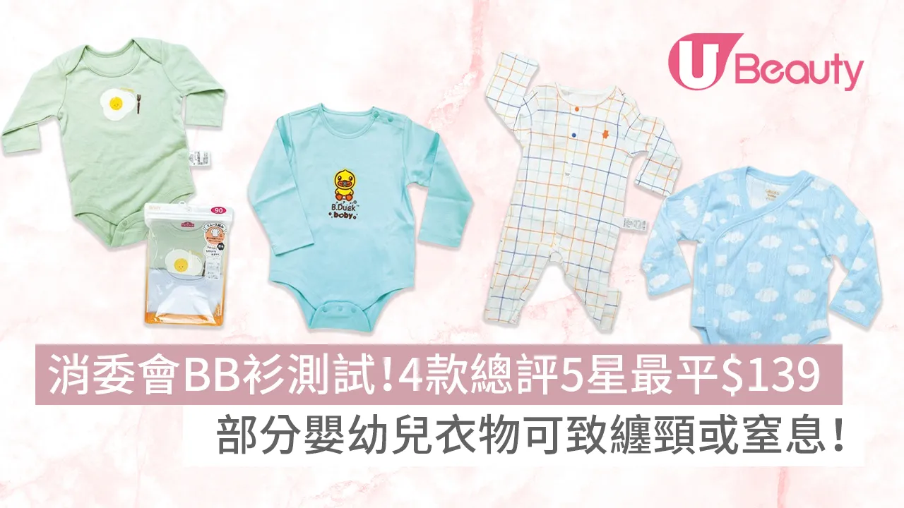 消委會BB衫測試結果2024|消委會分別從嬰幼兒服裝店、連鎖服裝店及百貨公司等,購入30款聲稱適合2歲或以下嬰幼兒穿著的衣物,分別有連身衣、包臀衣、以及俗稱「和尚袍」或「蝴蝶衣」的襟衣,平均每件售價由$22至$419不等。綜合多項測試,有4款嬰幼兒衣物獲最高5星總評,當中包括1套2件、售價$139的樣本,附消委會建議4大安全選購貼士!
