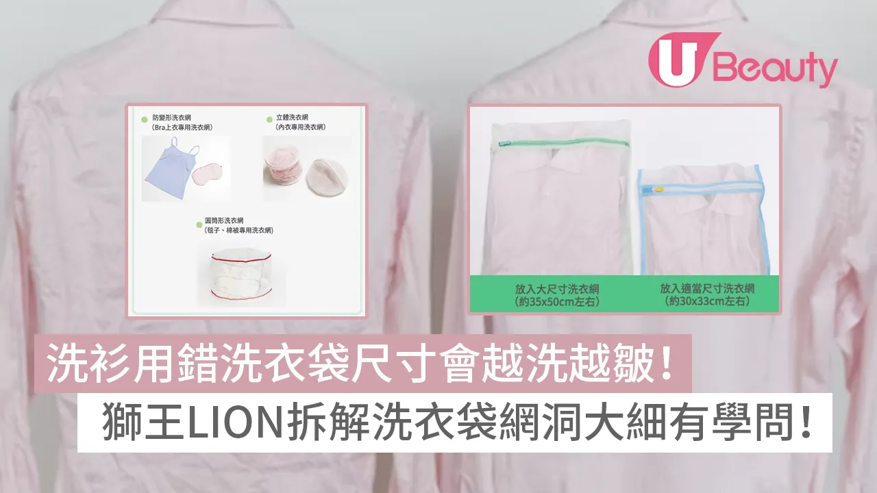 洗衫貼士|洗衣袋有助洗衫時保護衣物不致受損。獅王(LION)曾於官方網站講解洗衣袋正確用法,除了貴價及附有裝飾品的衣物更適合用洗衣袋外,亦指出使用不當尺寸洗衣袋有機會令衣物越洗越皺,而不同種類衣物適用的洗衣袋尺寸亦有分別。