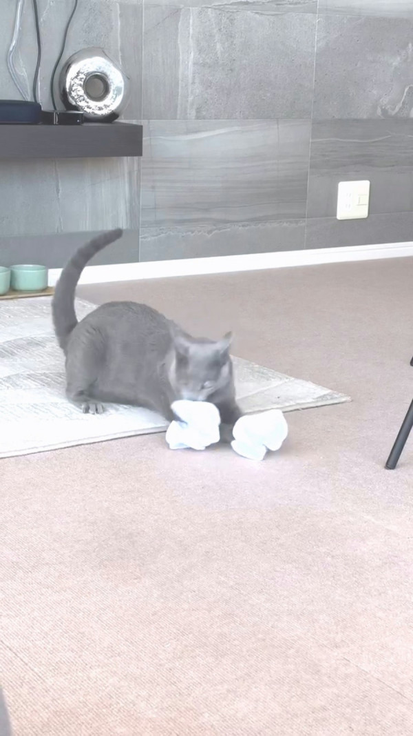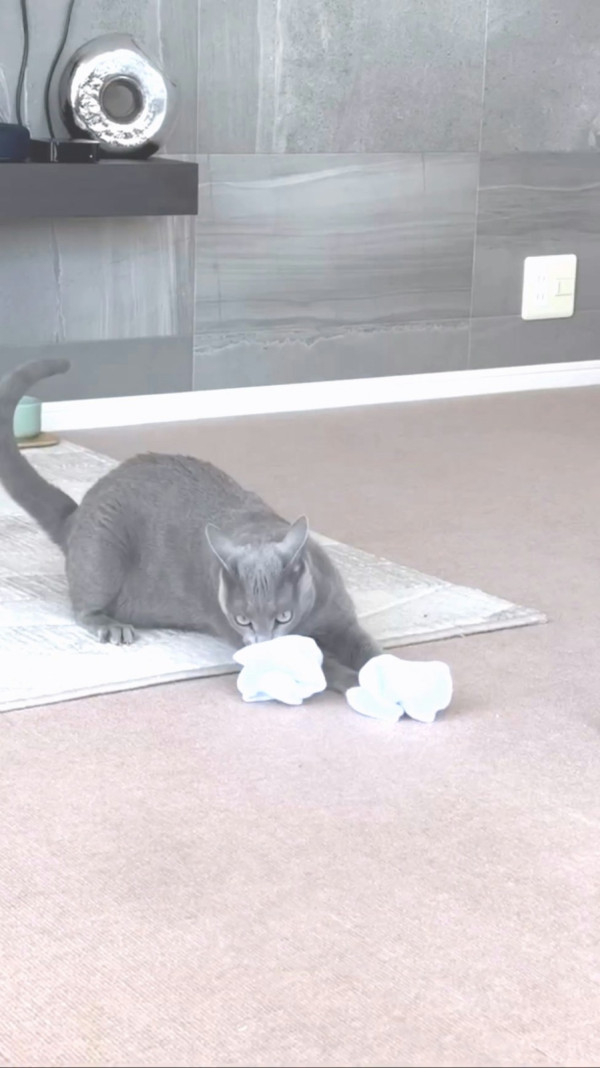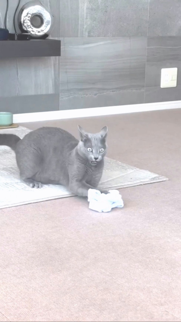 這名飼主(@belle_0920_belle)在家中飼養了三隻貓咪,而其中大家姐貝兒是隻俄羅斯藍貓,性格最為活潑好動,平日經常探索家中的各個角落。某天貝兒像往常一樣在家中四處探險,而飼主的丈夫剛脫下來的襪子吸引了貝兒的注意,當貝兒發現這雙襪子後,牠立即將其抱在懷中,開始專心地嗅聞,似乎對這股特殊氣味無法自拔。