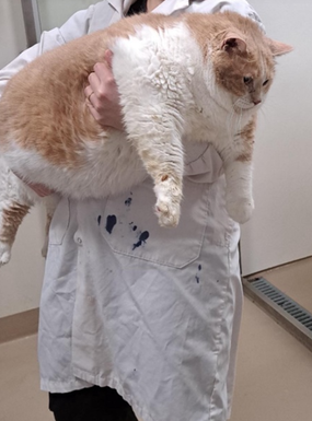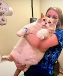 這位名為Kristine Seguin的女生,起初在網上看到Axel的照片,早已知道他是一隻肥貓,所以早早做好心理準備,迎接這個新成員的到來。不過當她到領養機構親眼見到Axel時,才發現這隻貓的實際體型竟然是一般貓咪的四倍大。這隻7歲的巨貓的體重竟然達到19公斤,而非她最初誤認的19磅(約8.6公斤),這個發現令Kristine感到十分震驚和困擾。